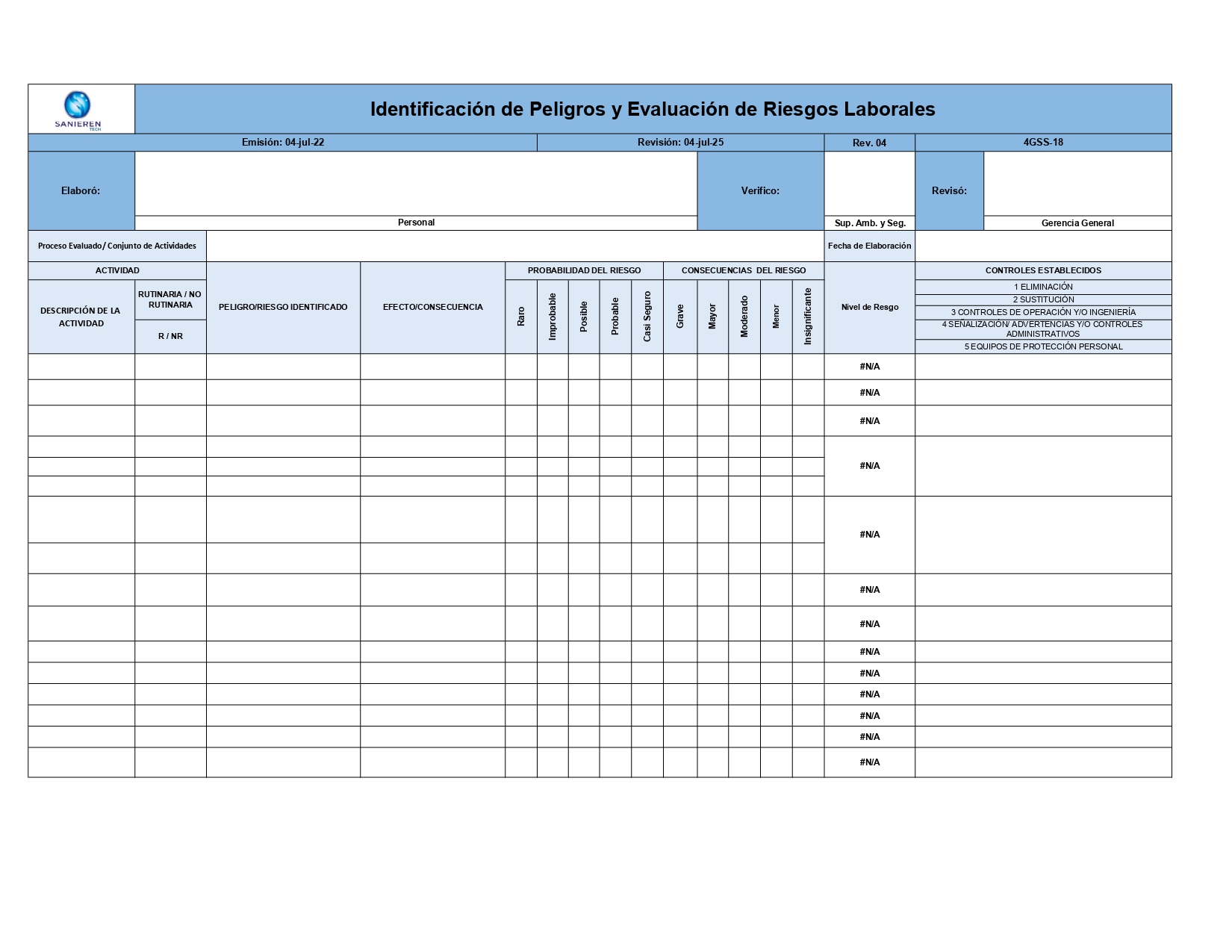 4GSS-18 Identificación de Peligros y Evaluació de Riesgos Laborales