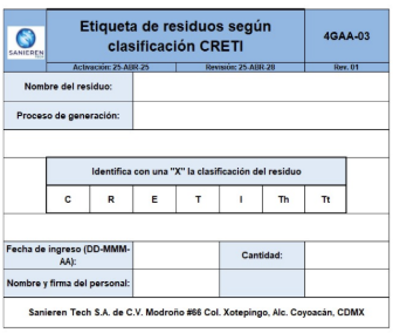 - Todos los residuos generados se clasificarán de acuerdo al formato 4GAA-06 Lista de aspectos ambientales.